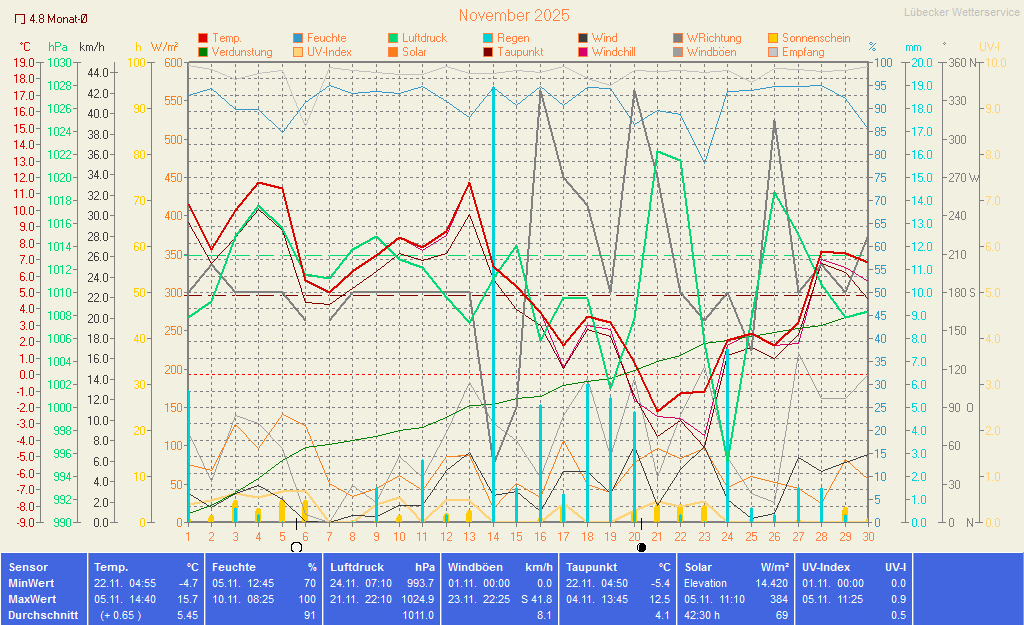 | Dunkelster Tag des Jahres | 14.11.2025 (18 W/m²) |