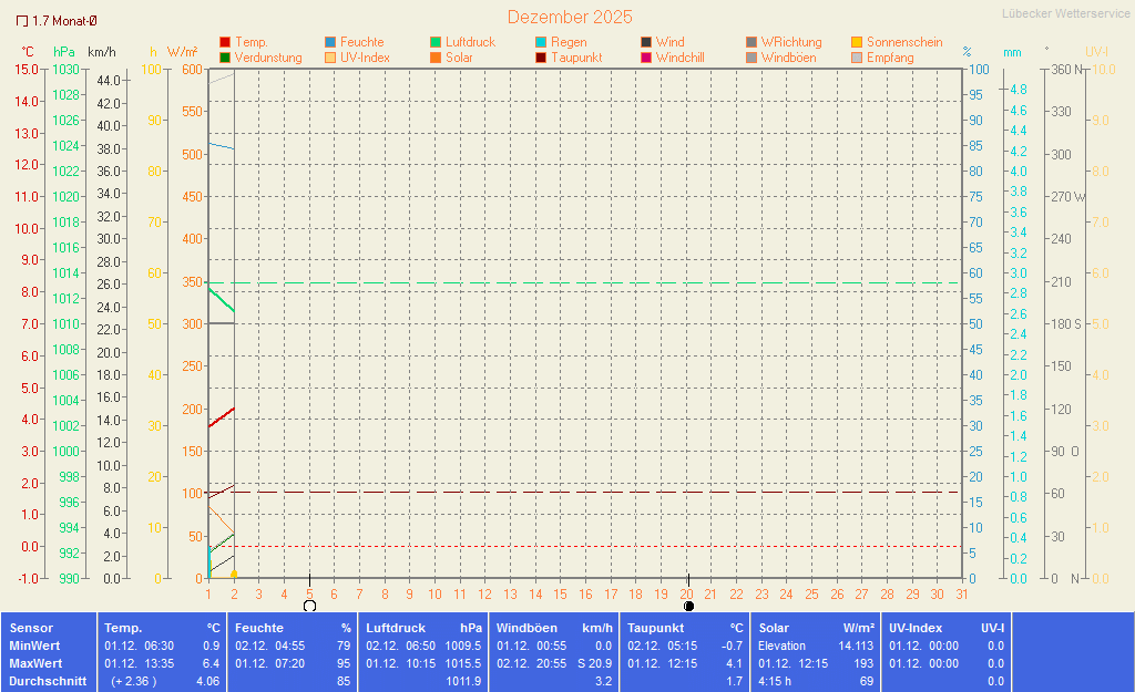 | Mittel | 1015,0 hPa | Windspeed / Windböe |