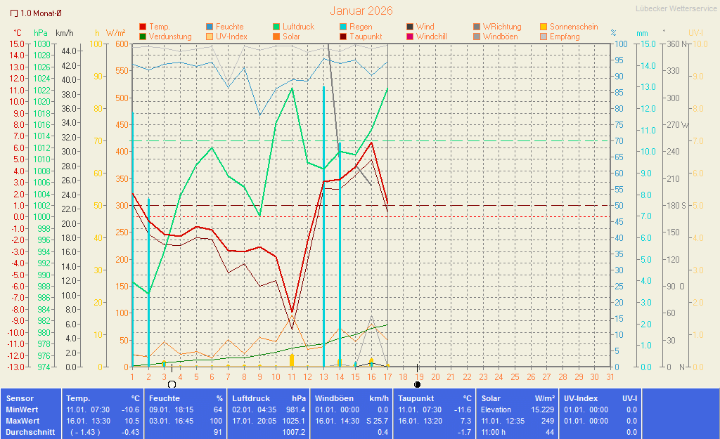 | Höchstwert Solar | 12:35 11.01.2026 (249 W/m²) |